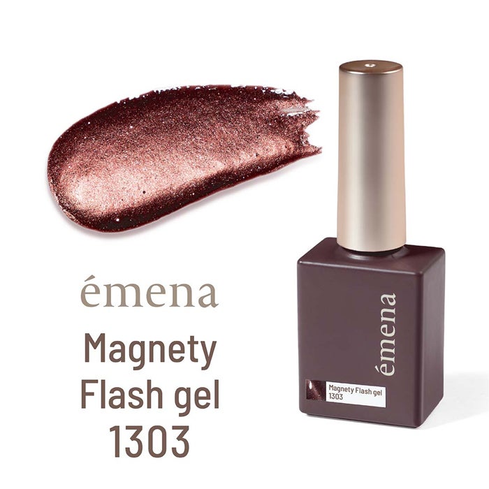 専用のマグネットを使用すると浮かび上がる光の筋と、光を反射するフラッシュグリッターが合わさり美しい輝きを放つ不思議なジェル。