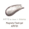 専用のマグネットを使用すると浮かび上がる光の筋と、光を反射するフラッシュグリッターが合わさり美しい輝きを放つ不思議なジェル。
